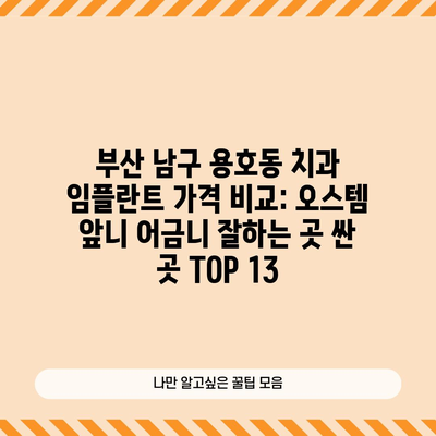 부산 남구 용호동에서 임플란트 시술을 고려하는 분들을 위한 13개 치과를 추천합니다. 각 치과의 가격대와 특징을 정리해드리겠습니다.
