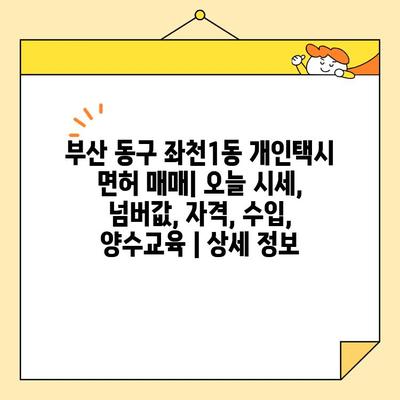 ✅ 부산 동구 좌천1동 개인택시 면허 매매에 대한 모든 것을 알려드립니다. 시세, 넘버값, 자격, 수입, 양수교육 정보를 한 번에 확인하세요!