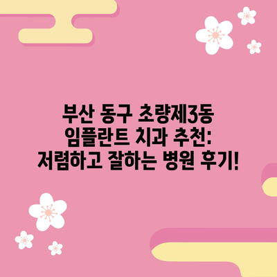 💡 부산 동구에서 저렴하고 좋은 임플란트 치과를 찾아보세요! 💡
