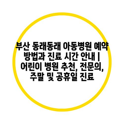 부산 동래동래 아동병원 예약 방법과 진료 시간 안내 | 어린이 병원 추천, 전문의, 주말 및 공휴일 진료