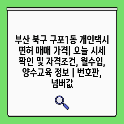 ✅ 부산 북구 구포1동 개인택시 면허 매매 시세, 자격조건, 월수입, 양수교육 정보 등 궁금한 모든 것을 한번에 확인하세요!