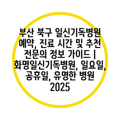 부산 북구 일신기독병원 예약, 진료 시간 및 추천 전문의 정보 가이드 | 화명일신기독병원, 일요일, 공휴일, 유명한 병원 2025