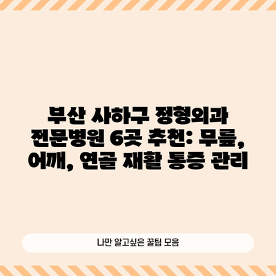 💡 부산 사하구에서 가장 효과적인 정형외과 치료법을 알아보세요. 💡