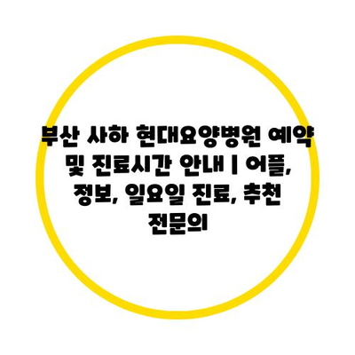 ✅ 부산 사하 현대요양병원의 예약 및 진료시간을 한 눈에 확인해 보세요.