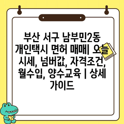 부산 서구 남부민2동 개인택시 면허 매매| 오늘 시세, 넘버값, 자격조건, 월수입, 양수교육 | 상세 가이드