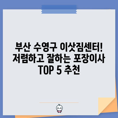 부산 수영구에서 이사를 준비하고 있다면, 어떤 포장이사 이삿짐센터를 선택해야 할지 고민일 것입니다. 이 글에서는 부산 수영구 지역에서 잘하는 곳이면서 저렴한 가격으로 서비스를 제공하는 포장이사 이삿짐센터 TOP 5를 추천해 드립니다. 이 추천 업체들은 다양한 이사 서비스와 고객 만족도를 기반으로 선정되었습니다. 이사를 계획하는 데 도움을 줄 수 있는 유용한 정보를 제공하니, 읽어보시기 바랍니다.