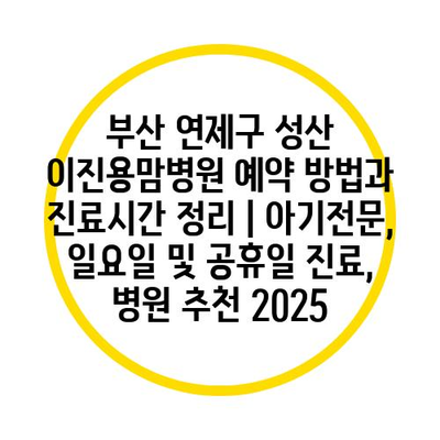 부산 연제구 성산 이진용맘병원 예약 방법과 진료시간 정리 | 아기전문, 일요일 및 공휴일 진료, 병원 추천 2025 에 대해 자주 묻는 질문 TOP 5