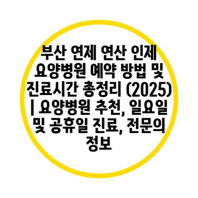 부산 연제 연산 인제 요양병원 예약 방법 및 진료시간 총정리 (2025) | 요양병원 추천, 일요일 및 공휴일 진료, 전연락 정보 에 대해 자주 묻는 질문 TOP 5