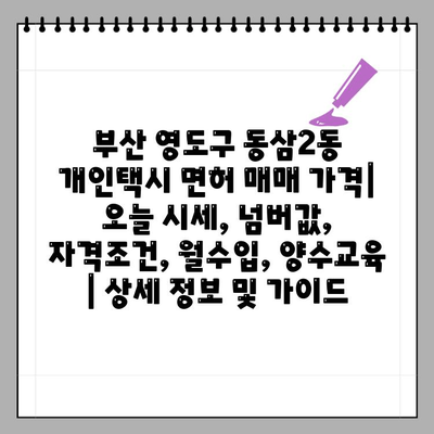 ✅ 영도구 동삼2동 개인택시 면허 매매 시세, 넘버값, 자격 조건, 월수입 등 상세 정보를 확인해보세요.