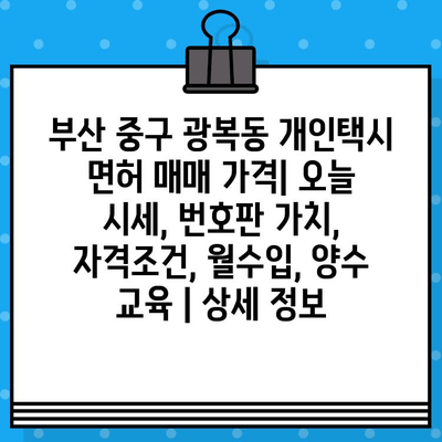 부산 중구 광복동 개인택시 면허 매매 가격 | 오늘 시세, 번호판 가치, 자격조건, 월수입, 양수 교육 | 상세 정보