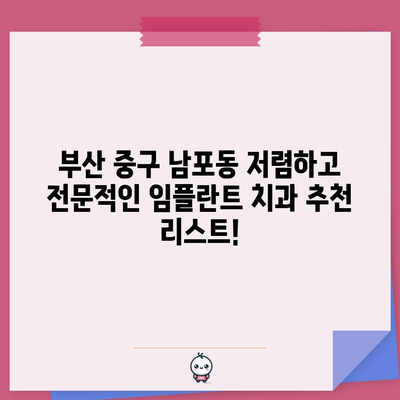 질문 1: 부산 중구 남포동에서 추천하는 임플란트 치과는 어디에 있나요?
