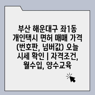 ✅ 부산 해운대구 좌1동 개인택시 면허 매매 가격, 오늘 시세가 궁금하다면? 자세한 정보를 확인해보세요!