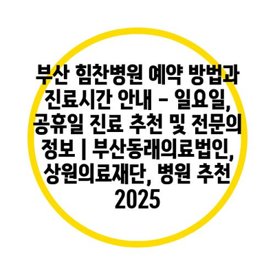 부산 힘찬병원 예약 방법과 진료시간 공지 – 일요일, 공휴일 진료 추천 및 전연락 정보 | 부산동래의료법인, 상원의료재단, 병원 추천 2025 에 대해 자주 묻는 질문 TOP 5