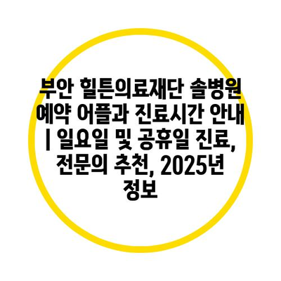 부안 힐튼의료재단 솔병원 예약 어플과 진료시간 공지 | 일요일 및 공휴일 진료, 전연락 추천, 2025년 정보 에 대해 자주 묻는 질문 TOP 5