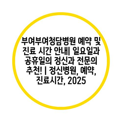 부여부여청담병원 예약 및 진료 시간 공지| 일요일과 공휴일의 정신과 전연락 추천! | 정신병원, 예약, 진료시간, 2025 에 대해 자주 묻는 질문 TOP 5