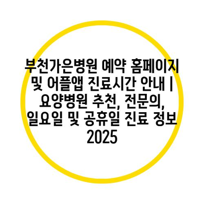 부천가은병원 예약 홈페이지 및 어플앱 진료시간 공지 | 요양병원 추천, 전연락, 일요일 및 공휴일 진료 정보 2025 에 대해 자주 묻는 질문 TOP 5