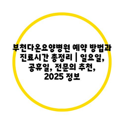 부천다온요양병원 예약 방법과 진료시간 총정리 | 일요일, 공휴일, 전문의 추천, 2025 정보
