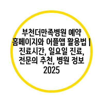 부천더만족병원 예약 홈페이지와 어플앱 활용법 | 진료시간, 일요일 진료, 전연락 추천, 병원 정보 2025에 대해 알아보겠습니다.