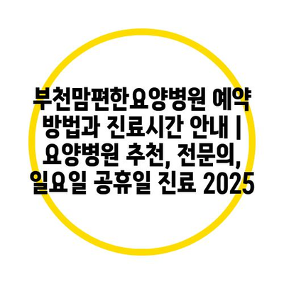 부천맘편한요양병원 예약 방법과 진료시간 안내 | 요양병원 추천, 전문의, 일요일 공휴일 진료 2025