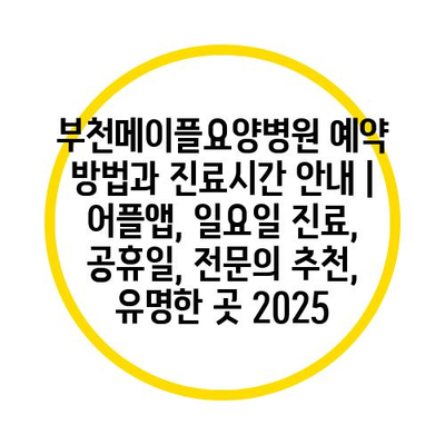 ✅ 부천메이플요양병원의 예약 방법과 진료 시간을 지금 바로 알아보세요!