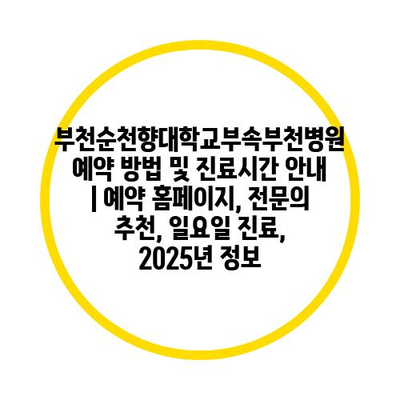 부천순천향대학교부속부천병원 예약 방법 및 진료시간 공지 | 예약 홈페이지, 전연락 추천, 일요일 진료, 2025년 정보 에 대해 자주 묻는 질문 TOP 5