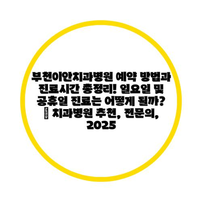 ✅ 부천이안치과병원 예약 꿀팁과 진료시간을 알아보세요!