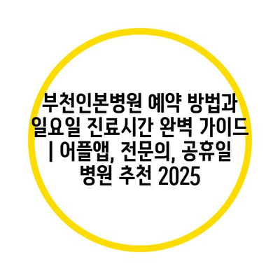 부천인본병원 예약 방법과 일요일 진료시간 완벽 설명서 | 어플앱, 전연락, 공휴일 병원 추천 2025에 대해 자주 묻는 질문 TOP 5