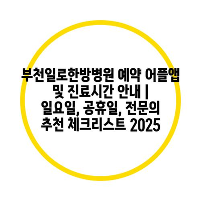 부천일로한방병원 예약 어플앱 및 진료시간 안내 | 일요일, 공휴일, 전문의 추천 체크리스트 2025