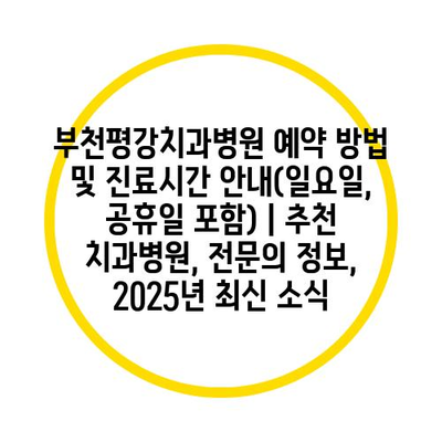 부천평강치과병원 예약 방법 및 진료시간 안내(일요일, 공휴일 포함) | 추천 치과병원, 전문의 정보, 2025년 최신 소식