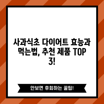 Meta Description: 사과식초 다이어트 효능과 먹는 법, 만들기 방법, 추천하는 제품 top 3에 대해 알아보세요. 건강한 다이어트를 위한 팁이 가득합니다.
