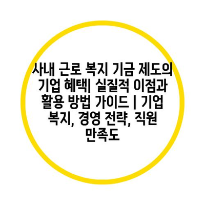 사내 근로 복지 기금 제도의 기업 혜택| 실질적 장점과 활용 방법 설명서 | 기업 복지, 경영 전략, 직원 만족도 에 대해 자주 묻는 질문 TOP 5