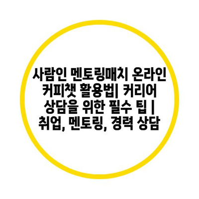 사람인 멘토링매치 온라인 커피챗 활용법| 커리어 상담을 위한 필수 팁 | 취업, 멘토링, 경력 상담에 대해 알아보겠습니다.