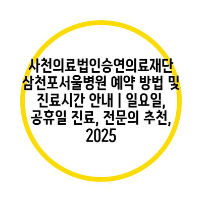 사천의료법인승연의료재단 삼천포서울병원 예약 방법 및 진료시간 공지 | 일요일, 공휴일 진료, 전연락 추천, 2025 에 대해 자주 묻는 질문 TOP 5