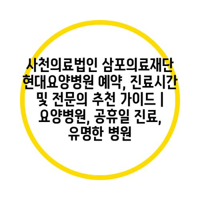 사천의료법인 삼포의료재단 현대요양병원 예약, 진료시간 및 전문의 추천 가이드 | 요양병원, 공휴일 진료, 유명한 병원