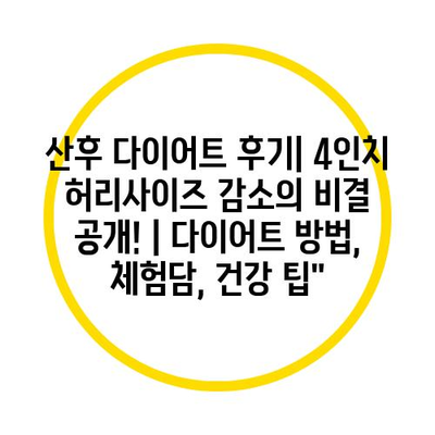 산후 다이어트는 많은 새롭게 엄마가 되는 여성들에게 중요한 주제입니다. 출산 후 체중 감량은 단순한 미용을 넘어 건강에도 큰 영향을 미칩니다. 여기에서는 자연 친화적인 방법을 통해 4인치 허리 사이즈 감소를 이룬 경험담을 공유하겠습니다.