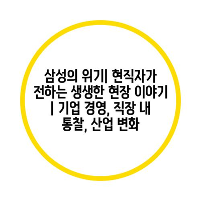 이번 글에서는 현장의 목소리를 통해 삼성의 실질적인 위기와 대응 방안을 공유하고, 기업들이 어떻게 위기를 기회로 바꾸는지를 살펴보겠습니다.