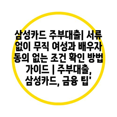 삼성카드 주부대출| 서류 없이 무직 여성과 배우자 동의 없는 조건 확인 방법 설명서 | 주부대출, 삼성카드, 금융 팁