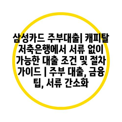 삼성카드 주부대출| 캐피탈 저축은행에서 서류 없이 가능한 대출 조건 및 절차 가이드 | 주부 대출, 금융 팁, 서류 간소화