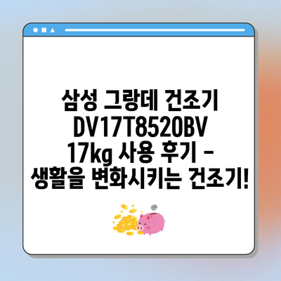 삼성 그랑데 건조기 DV17T8520BV 17kg 사용 후기를 통해 건조기가 주는 생활의 변화를 살펴보세요. 효율성과 편리함을 경험해보실 수 있습니다.