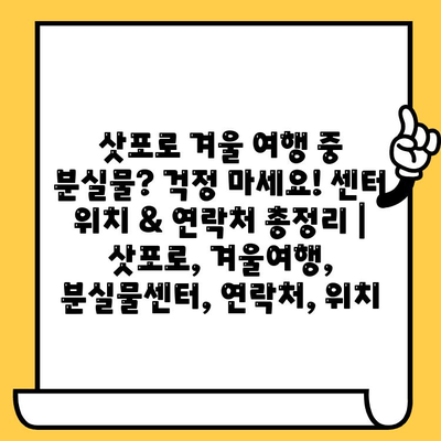 ✅ 삿포로 겨울 여행 중 소중한 물건을 잃어버렸다면? 분실물센터 위치와 연락처를 한눈에 확인하고 안전하게 찾아보세요!
