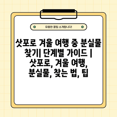 ✅ 삿포로 겨울 여행 중 소중한 물건을 잃어버렸을 때 당황하지 마세요! 단계별 가이드와 유용한 팁을 통해 분실물을 찾을 수 있는 확률을 높여보세요.