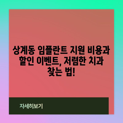 💡 상계동 임플란트 지원 비용과 할인 이벤트를 자세히 알아보세요. 💡