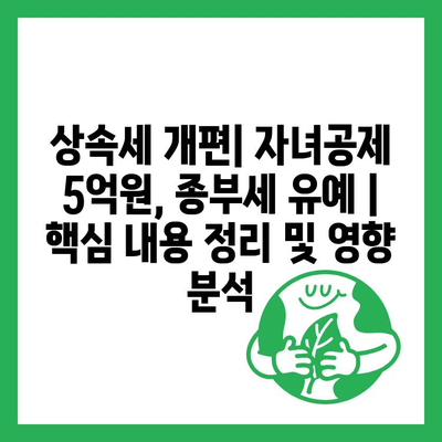 상속세 개편| 자녀공제 5억원, 종부세 유예 | 핵심 내용 정리 및 영향 분석