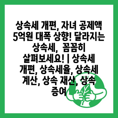 상속세 개편, 자녀 공제액 5억원 대폭 상향! 달라지는 상속세, 꼼꼼히 살펴보세요! | 상속세 개편, 상속세율, 상속세 계산, 상속 재산, 상속 증여