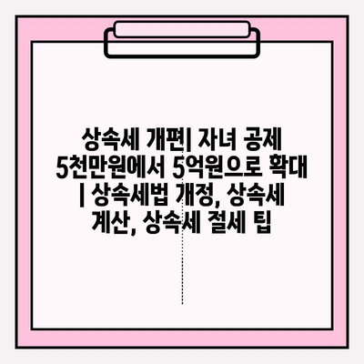 상속세 개편 | 자녀 공제 5천만원에서 5억원으로 확대 | 상속세법 개정, 상속세 계산, 상속세 절세 팁