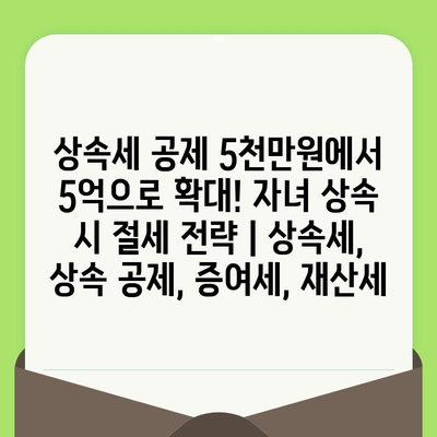 상속세 공제 5천만원에서 5억으로 확대! 자녀 상속 시 절세 전략 | 상속세, 상속 공제, 증여세, 재산세