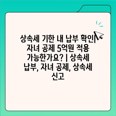 상속세 기한 내 납부 확인| 자녀 공제 5억원 적용 가능한가요? | 상속세 납부, 자녀 공제, 상속세 신고
