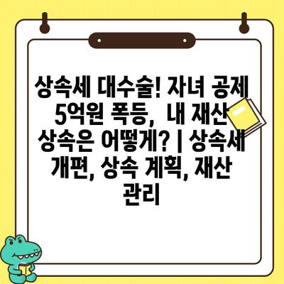 상속세 대수술! 자녀 공제 5억원 폭등, 내 재산 상속은 어떻게?