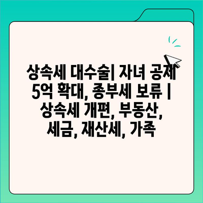 - 정부는 상속세 개편을 통해 자녀 공제를 5억원으로 확대하고, 종부세는 당분간 유지하기로 결정했습니다. 이는 고액 자산가들의 상속 부담을 완화하고, 중산층의 상속세 부담은 줄이려는 정책입니다.