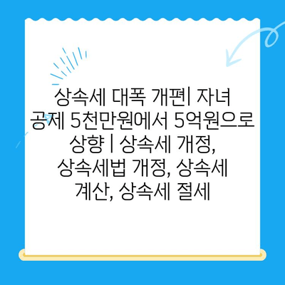 상속세 대폭 개편| 자녀 공제 5천만원에서 5억원으로 상향 | 상속세 개정, 상속세법 개정, 상속세 계산, 상속세 절세